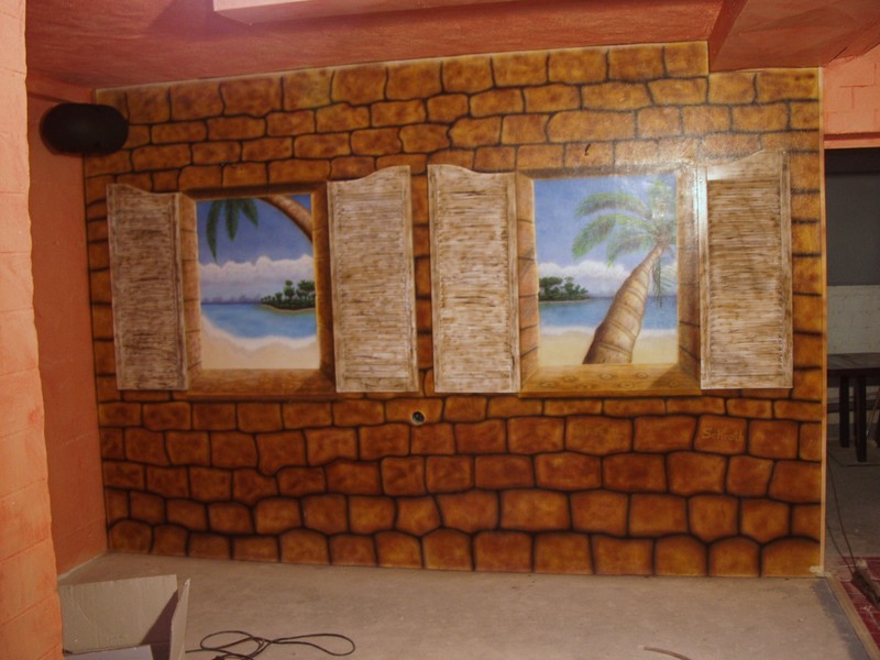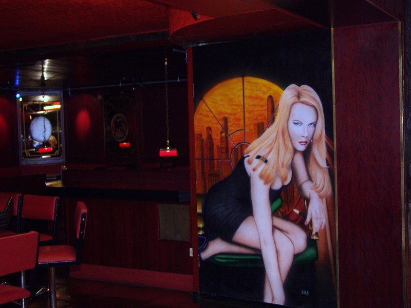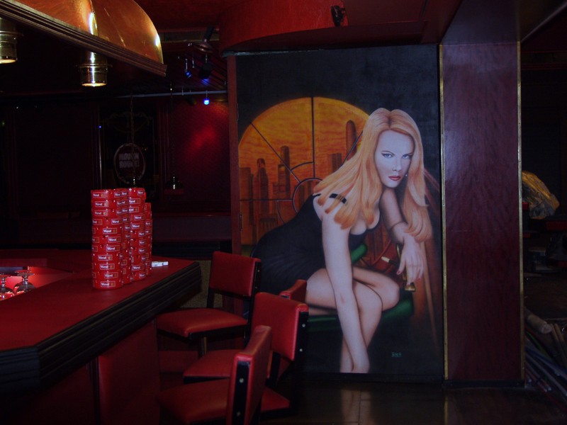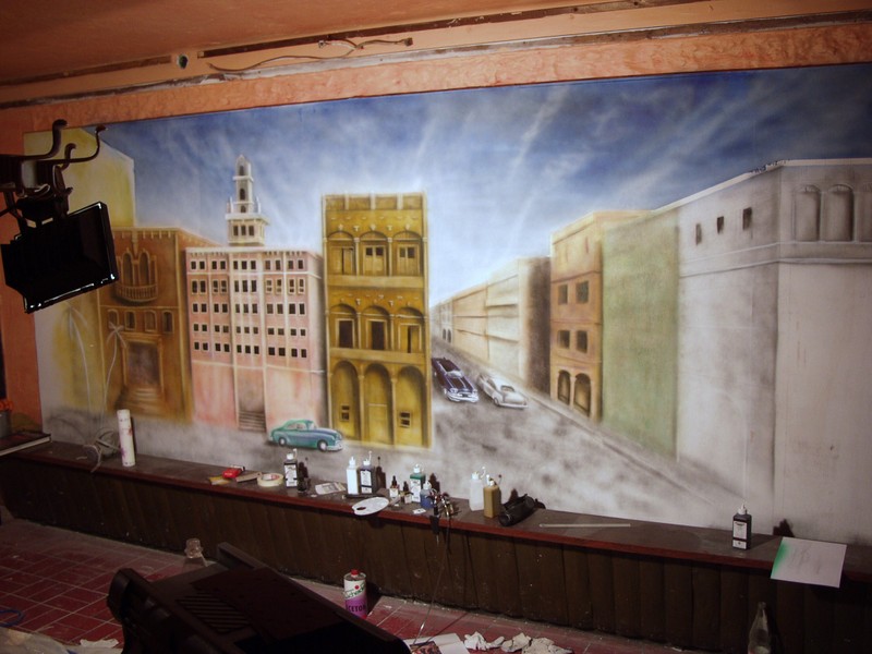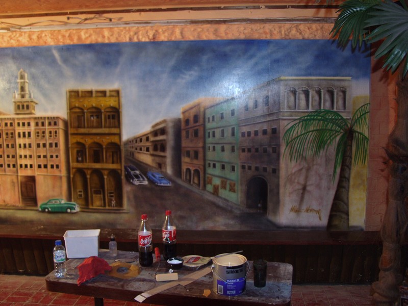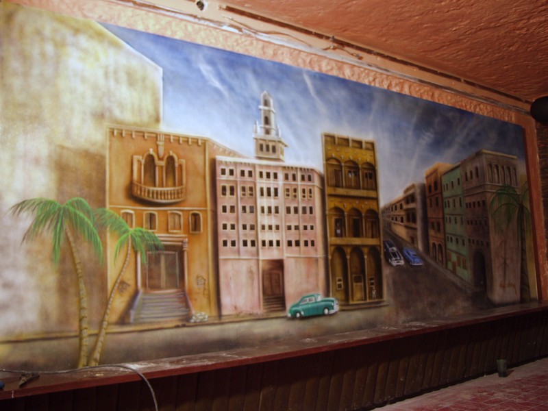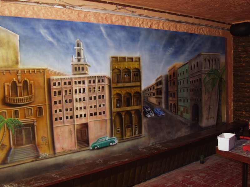 4 Wandbilder mit Illusionsmalerei von 3 bis 13 m² in der Havanna-Bar im Tanzlokal “Odeon 2000” in Kuppenheim bei Karlsruhe
