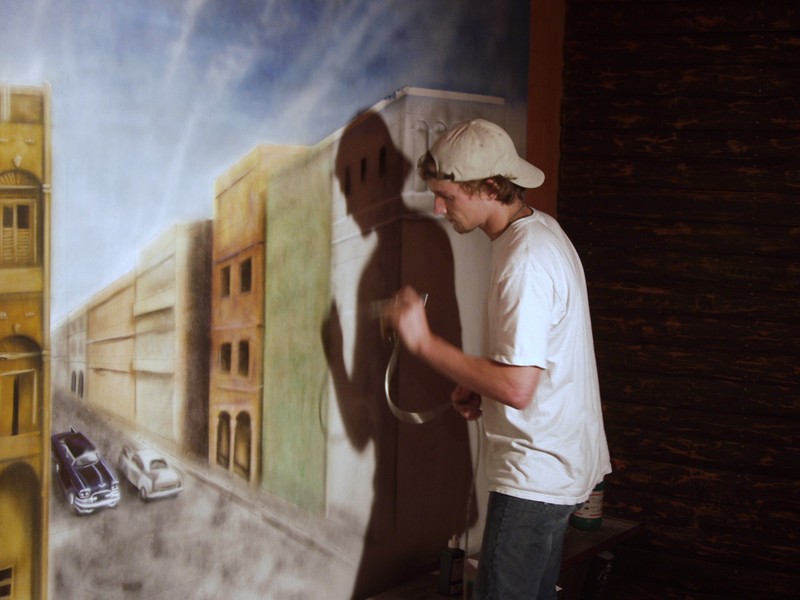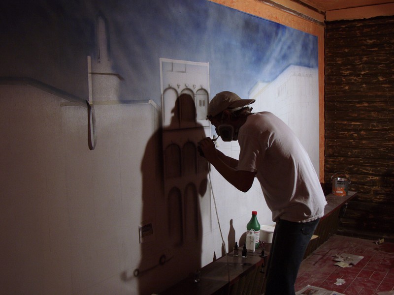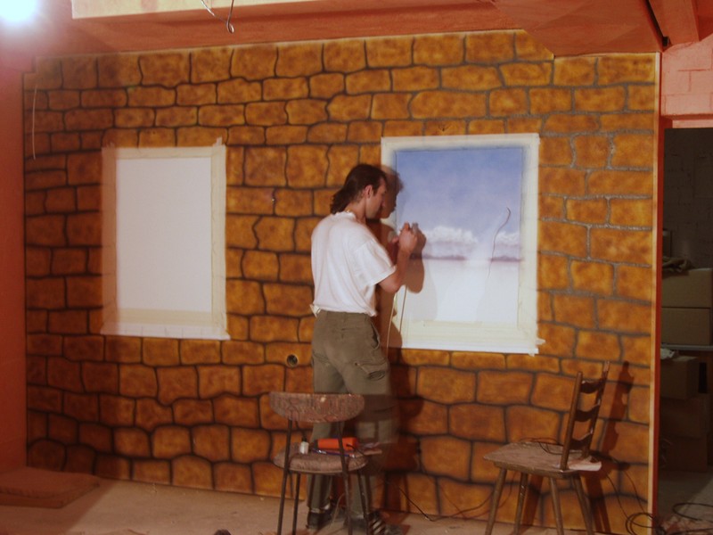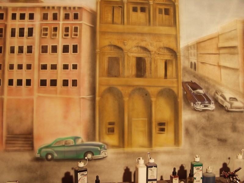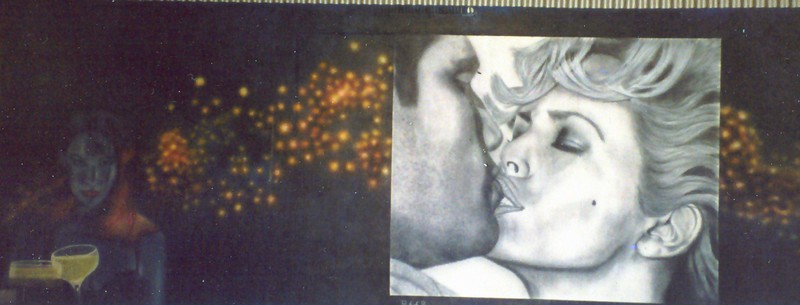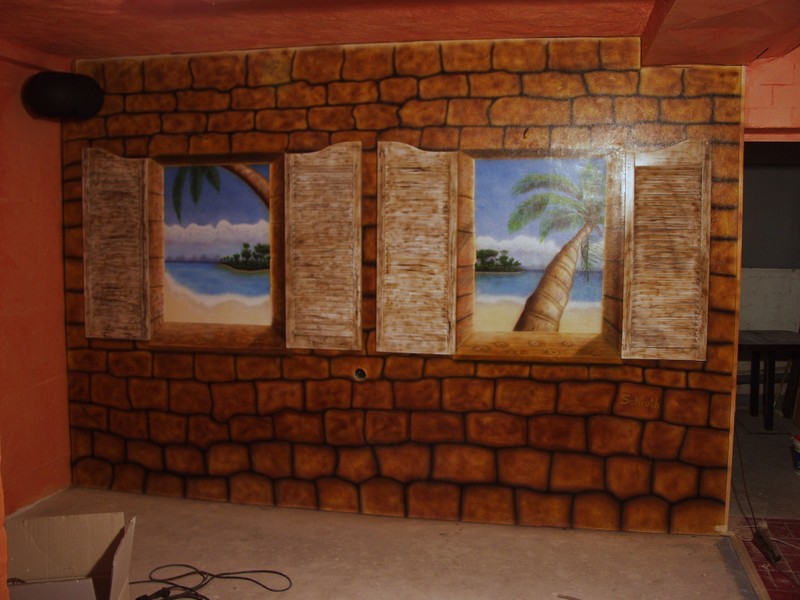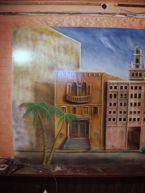 4 Wandbilder mit Illusionsmalerei von 3 bis 13 m² in der Havanna-Bar im Tanzlokal “Odeon 2000” in Kuppenheim bei Karlsruhe